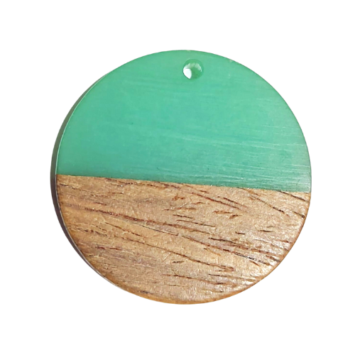[-0719] Zawieszka okrągła z drewna i żywicy 28mm miętowa