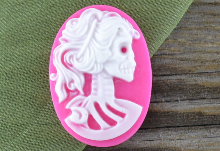 [03621] Kamea czaszka biała na różowym tle 18*25mm