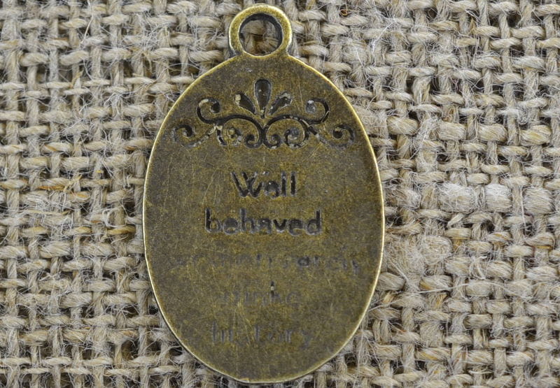 [107277] Zawieszka mała owalna napis brąz 2szt