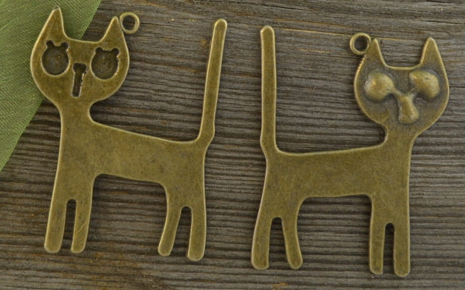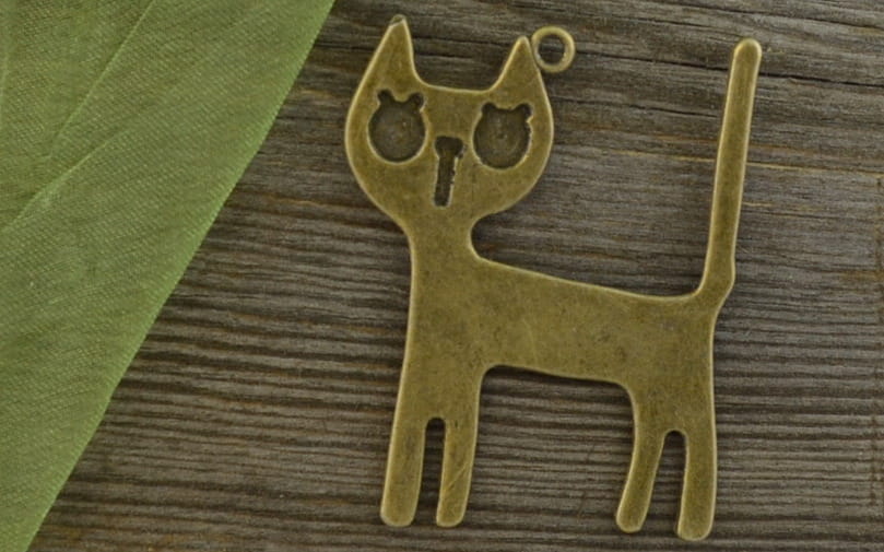[10807] Zawieszka duża kot w kolorze brązu