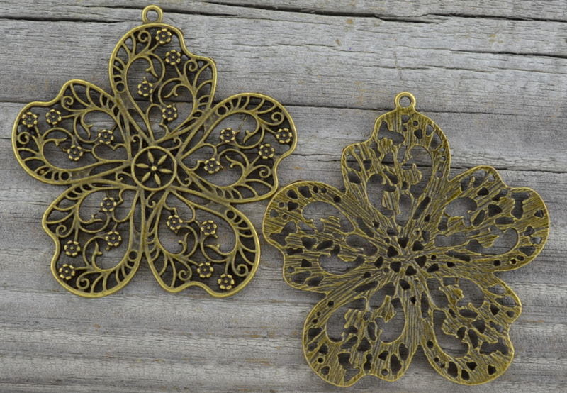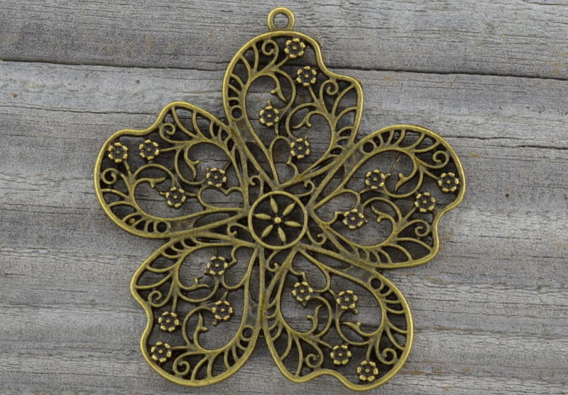 [108106] Zawieszka duża kwiatek w kolorze brązu
