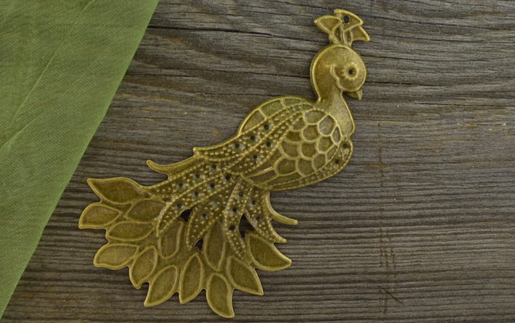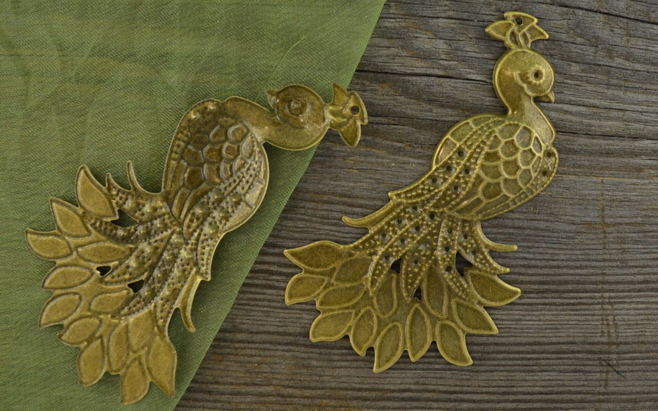 [10811] Zawieszka duża paw lekki kolor brąz 2szt