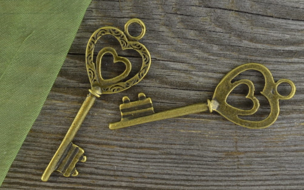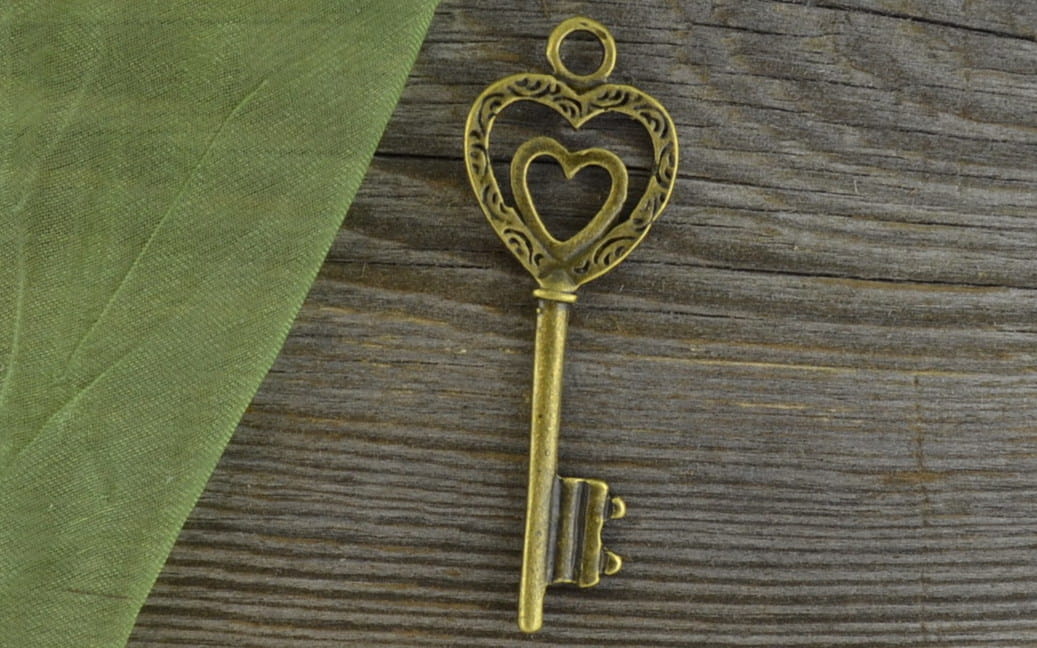[10853] Zawieszka duża klucz z sercem kolor brąz