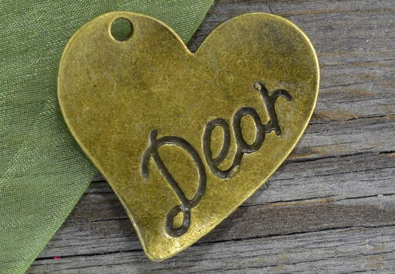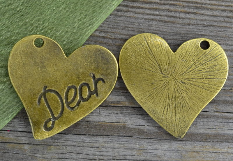 [10875] Zawieszka duża serce DEAR w kolorze brązu
