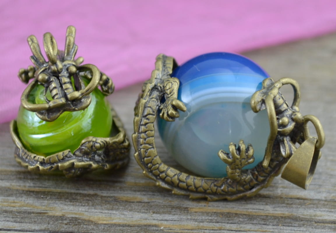 Uwagi: Element można dowolnie dopasować do kształtu koralika, widoczne na zdjęciu koraliki mają średnicę 14mm oraz 18mm