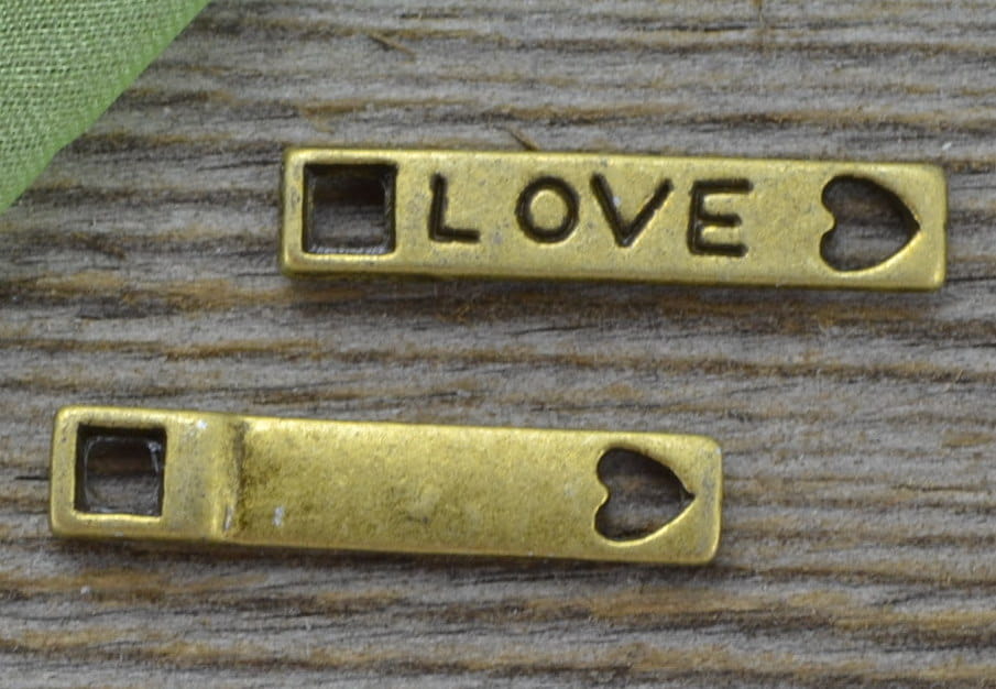 [11266] Łącznik z napisem love kolor brąz 3szt