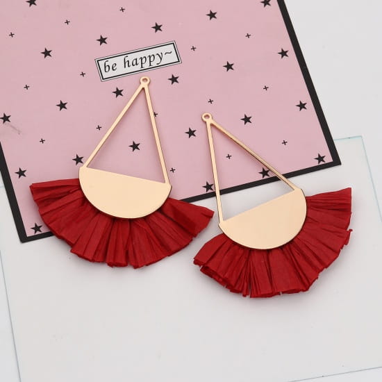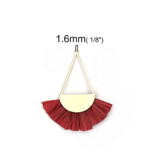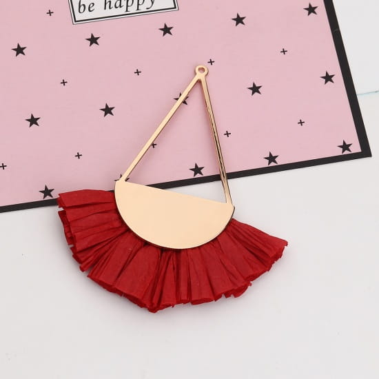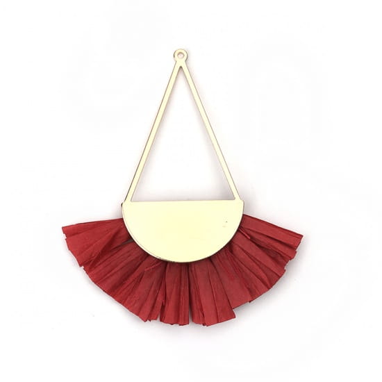 [207200] Zawieszka w kolorze złotym frędzel z rafii czerwony