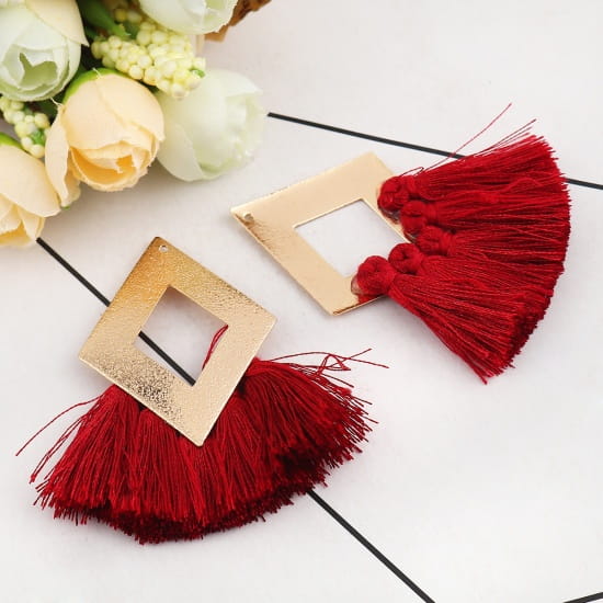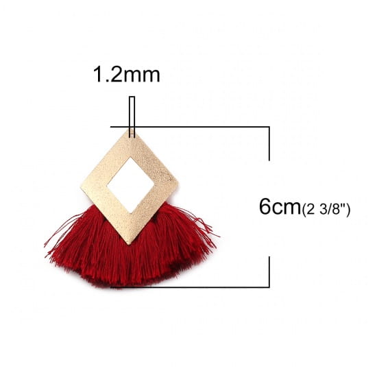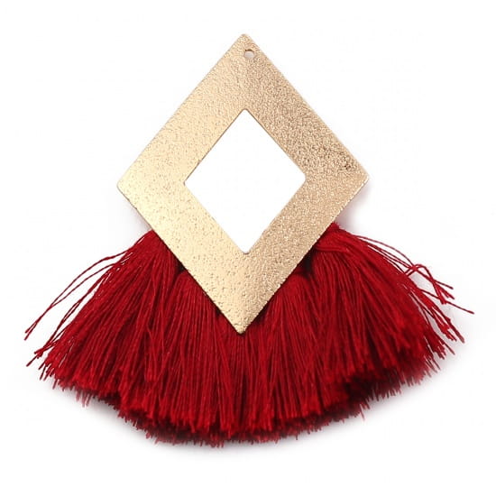 [207203] Zawieszka w kolorze złotym frędzel romb bordowy