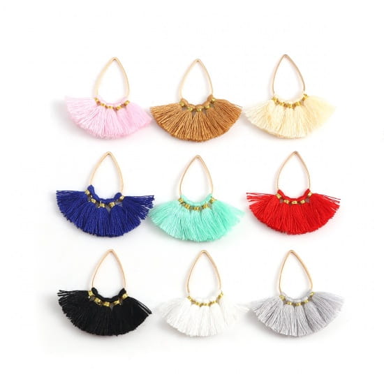 [207207] Zawieszka w kolorze złotym łezka z kremowymi frędzlami