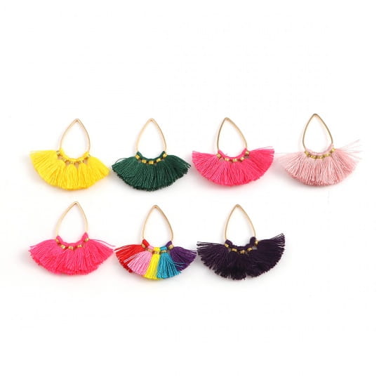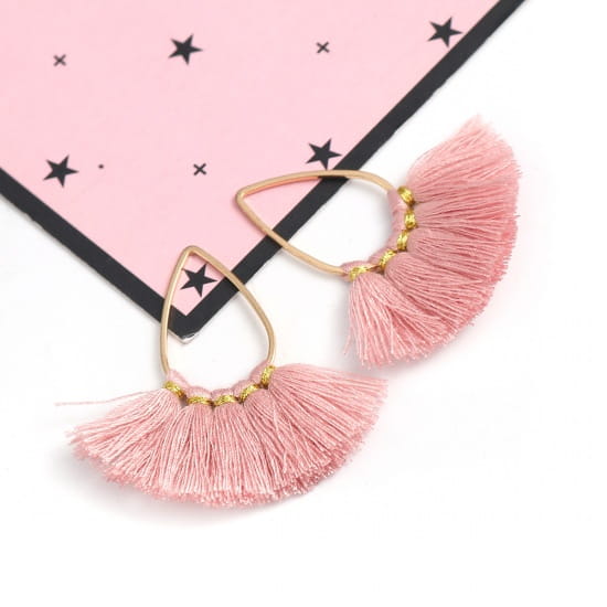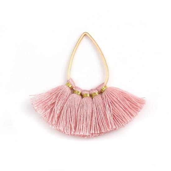 [207209] Zawieszka kolor złoty łezka przydymionoróżowe frędzle
