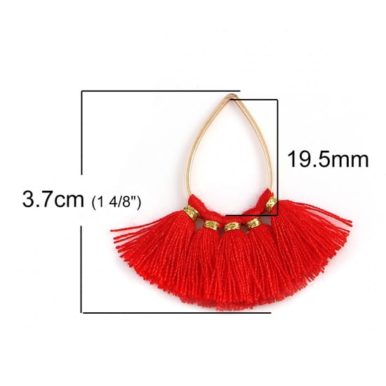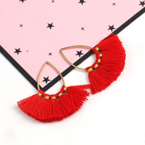 [207211] Zawieszka w kolorze złotym łezka z czerwonymi frędzlami
