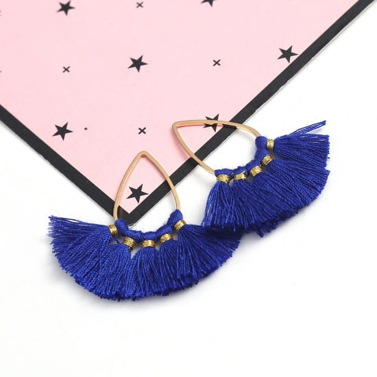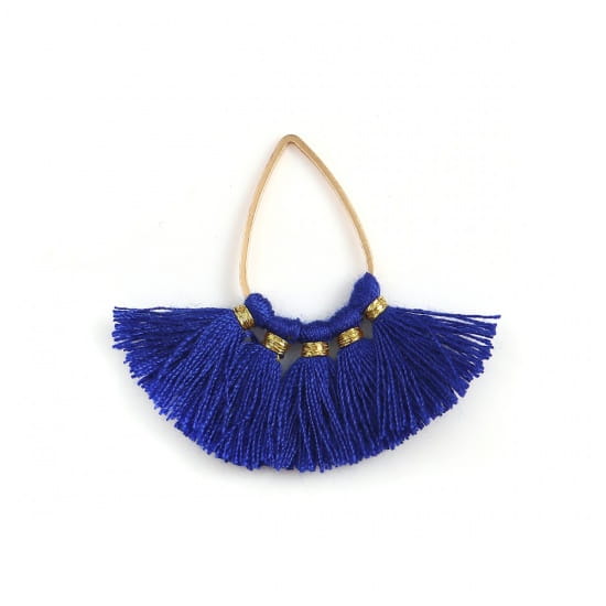[207214] Zawieszka kropla w kolorze złota z chabrowymi frędzlami