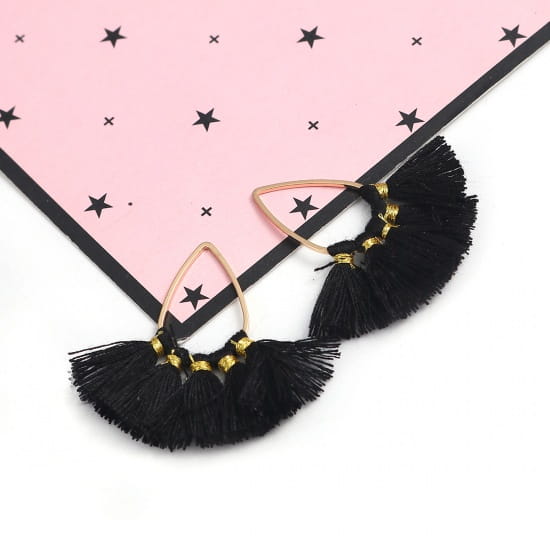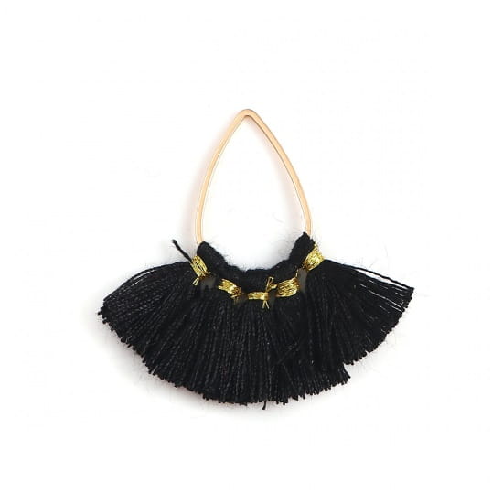 [207215] Zawieszka kropla w kolorze złota z czarnymi frędzlami