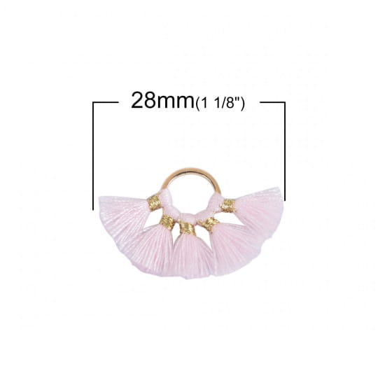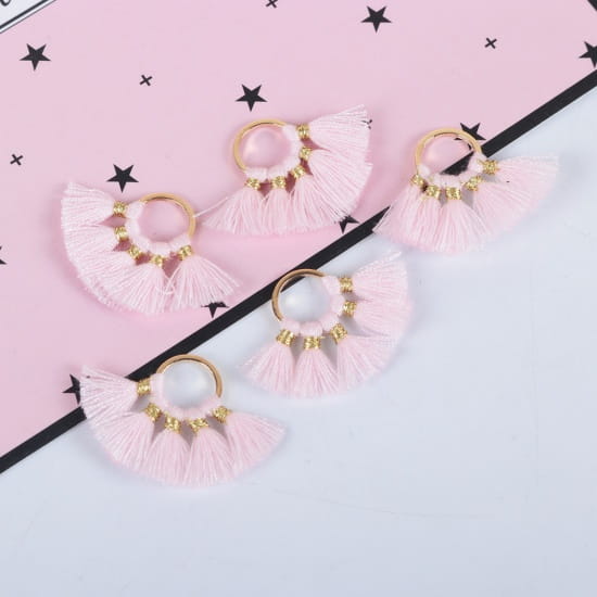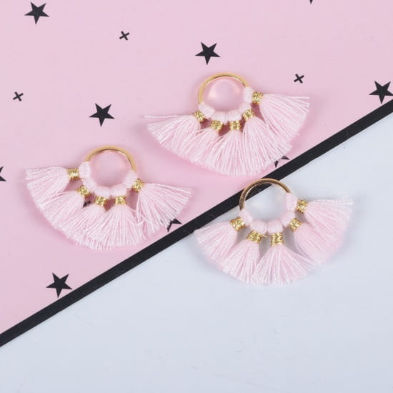 [207250] Zawieszka kolor złoty koło z jasnoróżowymi frędzlami