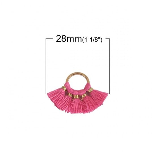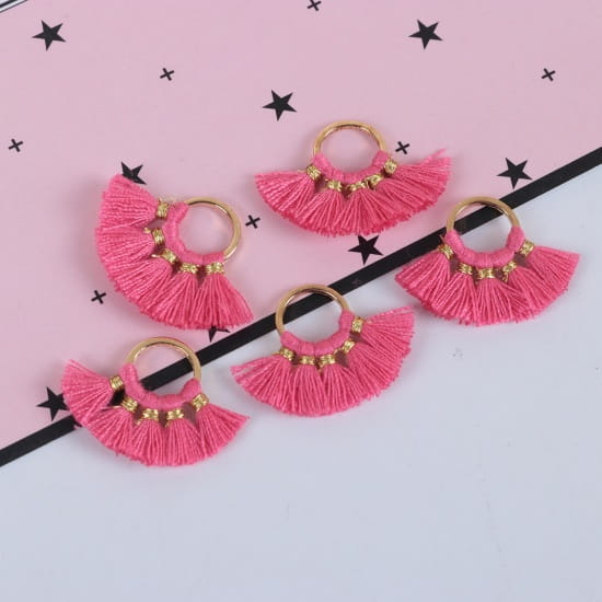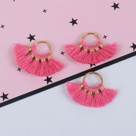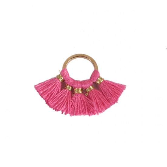 [207251] Zawieszka w kolorze złotym koło z różowymi frędzlami