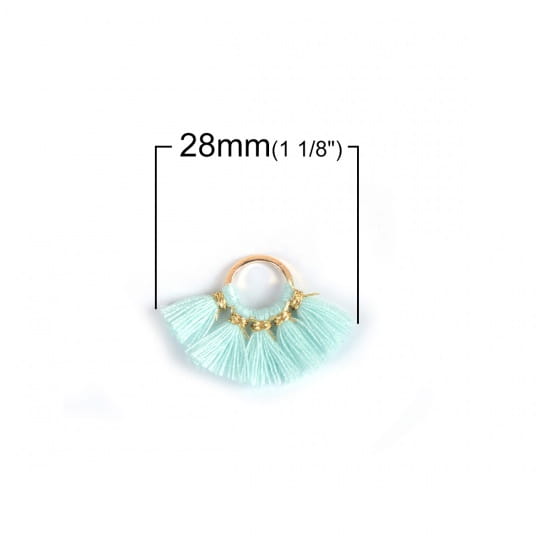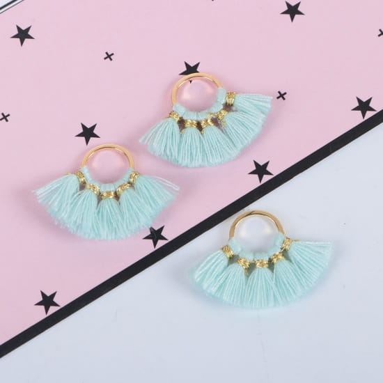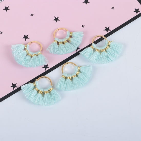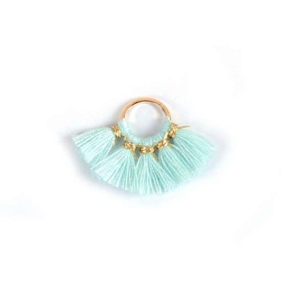 [207252] Zawieszka w kolorze złotym koło z miętowymi frędzlami