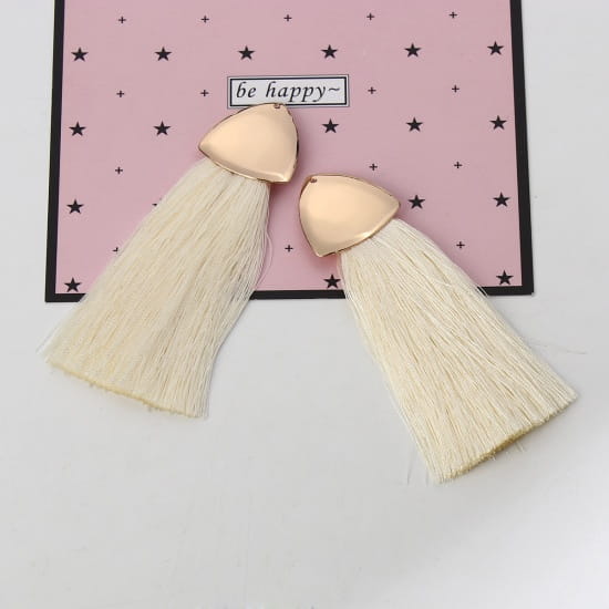 [207255] Zawieszka w kolorze złotym frędzel kremowy długi
