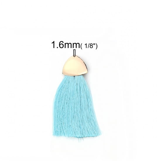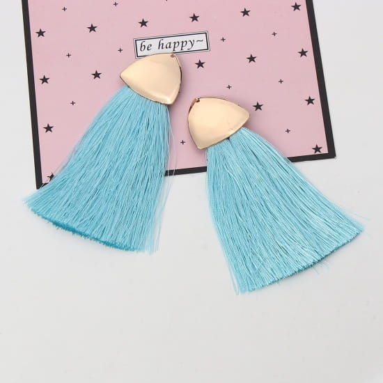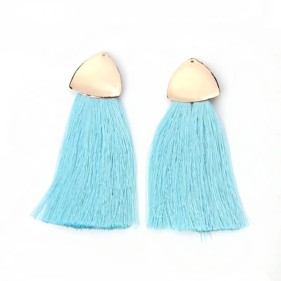 [207258] Zawieszka w kolorze złotym frędzel błękitny długi