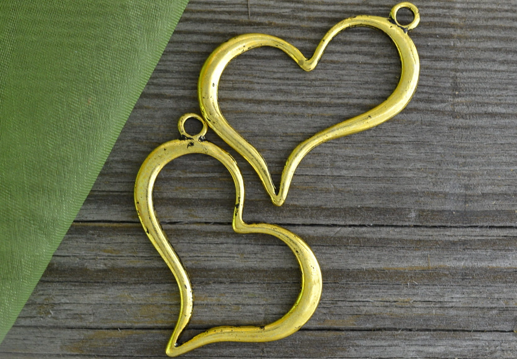 [20804] Zawieszka duża serce kolor złota 2szt