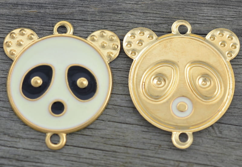 [21221] Łącznik ozdobny emaliowany złoty panda
