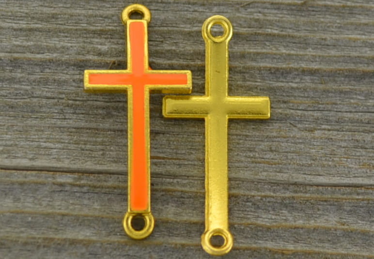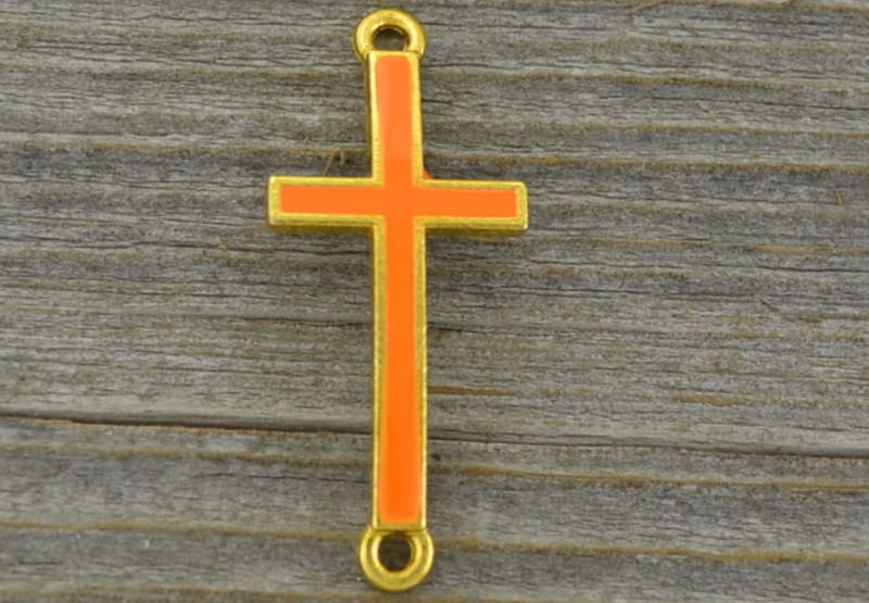 [21252] Łącznik krzyżyk emaliowany pomarańczowy