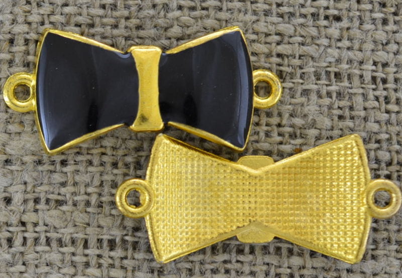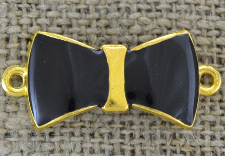 [21270] Łącznik ozdobny kokardka emaliowana czarna
