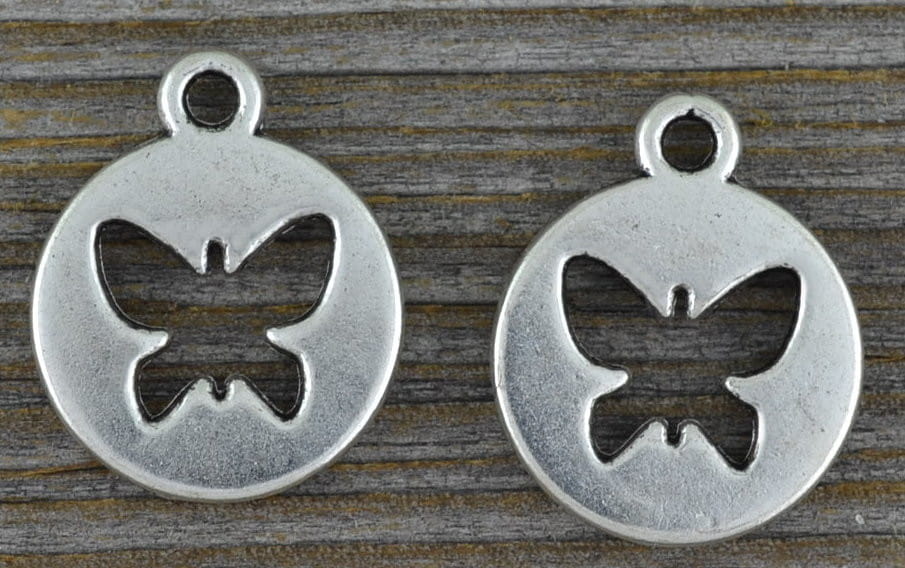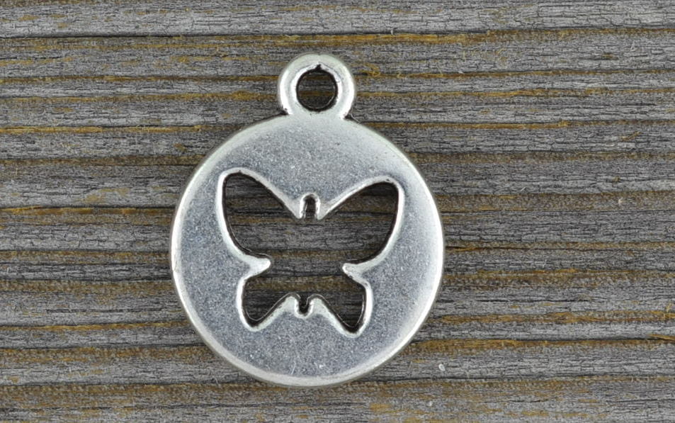 [30717] Zawieszka moneta motylkiem kolor srebrny