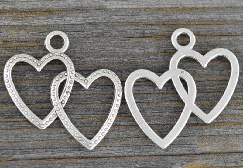 [307186] Zawieszka mała dwa serca srebrna 4szt