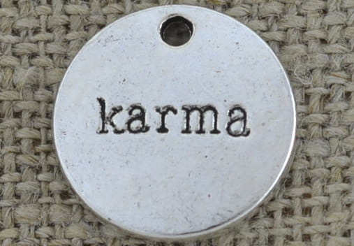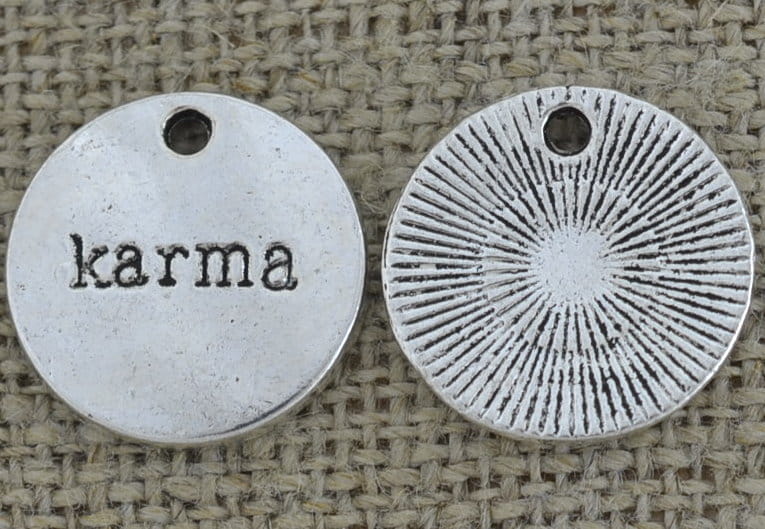 [30746] Zawieszka mała moneta "karma" kolor srebrny