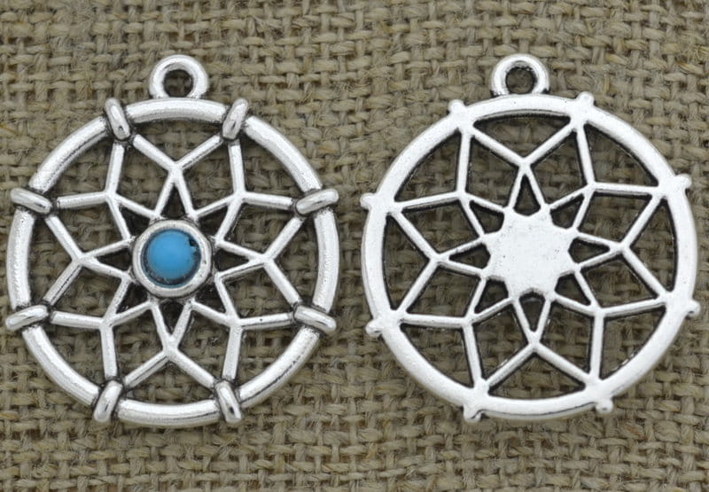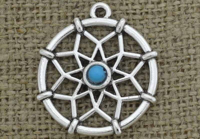 [307485] Zawieszka rozeta łapacz snów z koralikiem kolor srebrny