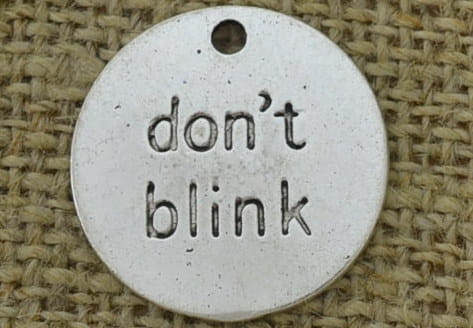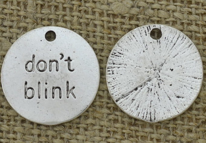 Opis: Zawieszka mała moneta "don't blink"