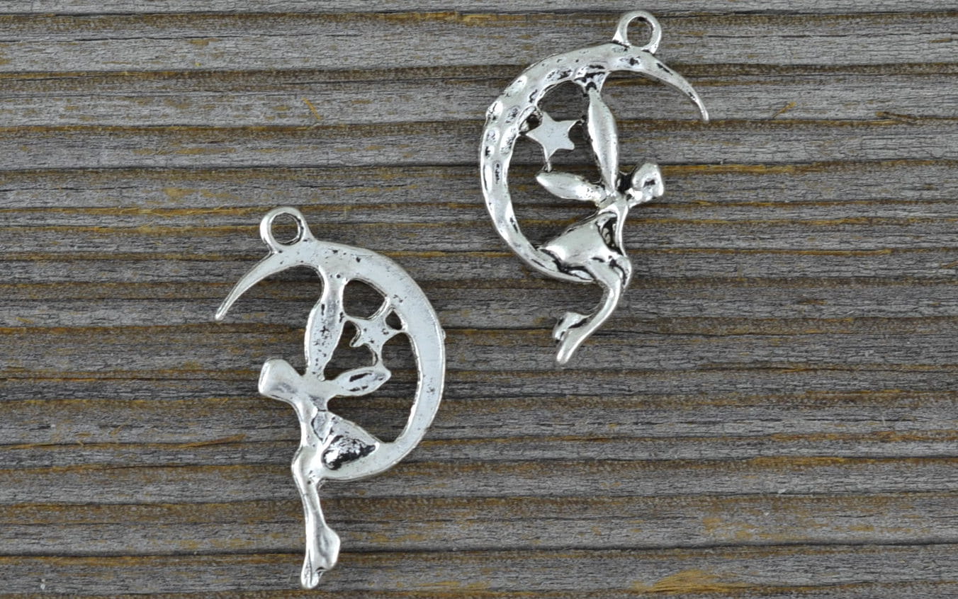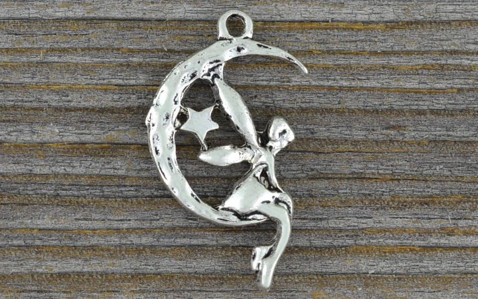 [30756] Zawieszka rusałka na księżycu srebrna 3szt