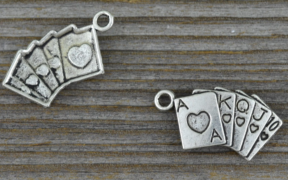 [30764] Zawieszka mała karty kolor srebrny 2szt