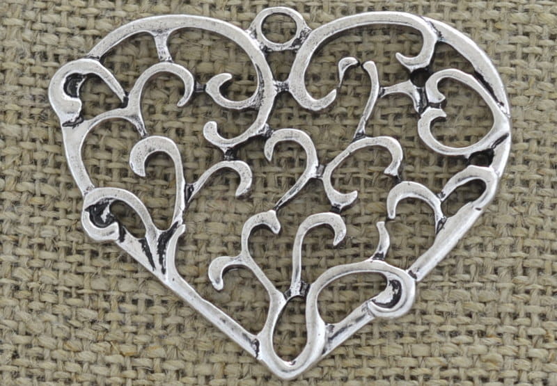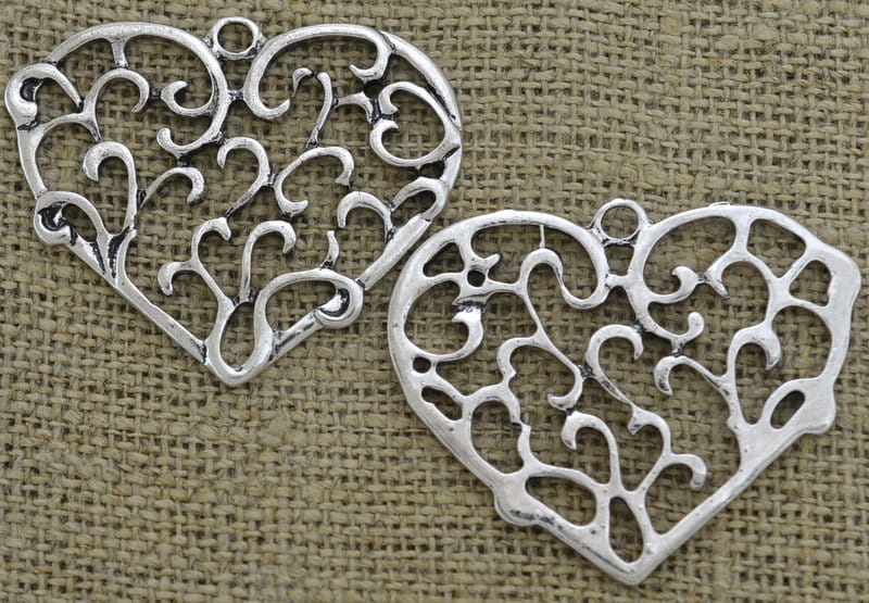 [30812] Zawieszka duża serce ażurowe kolor srebrny