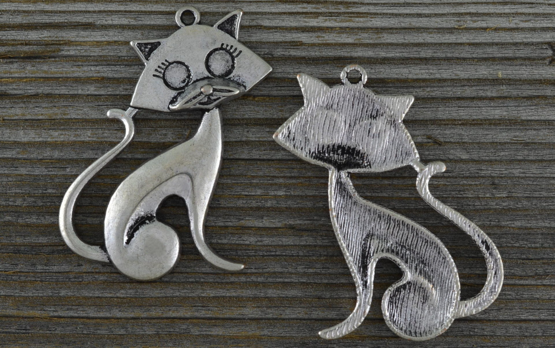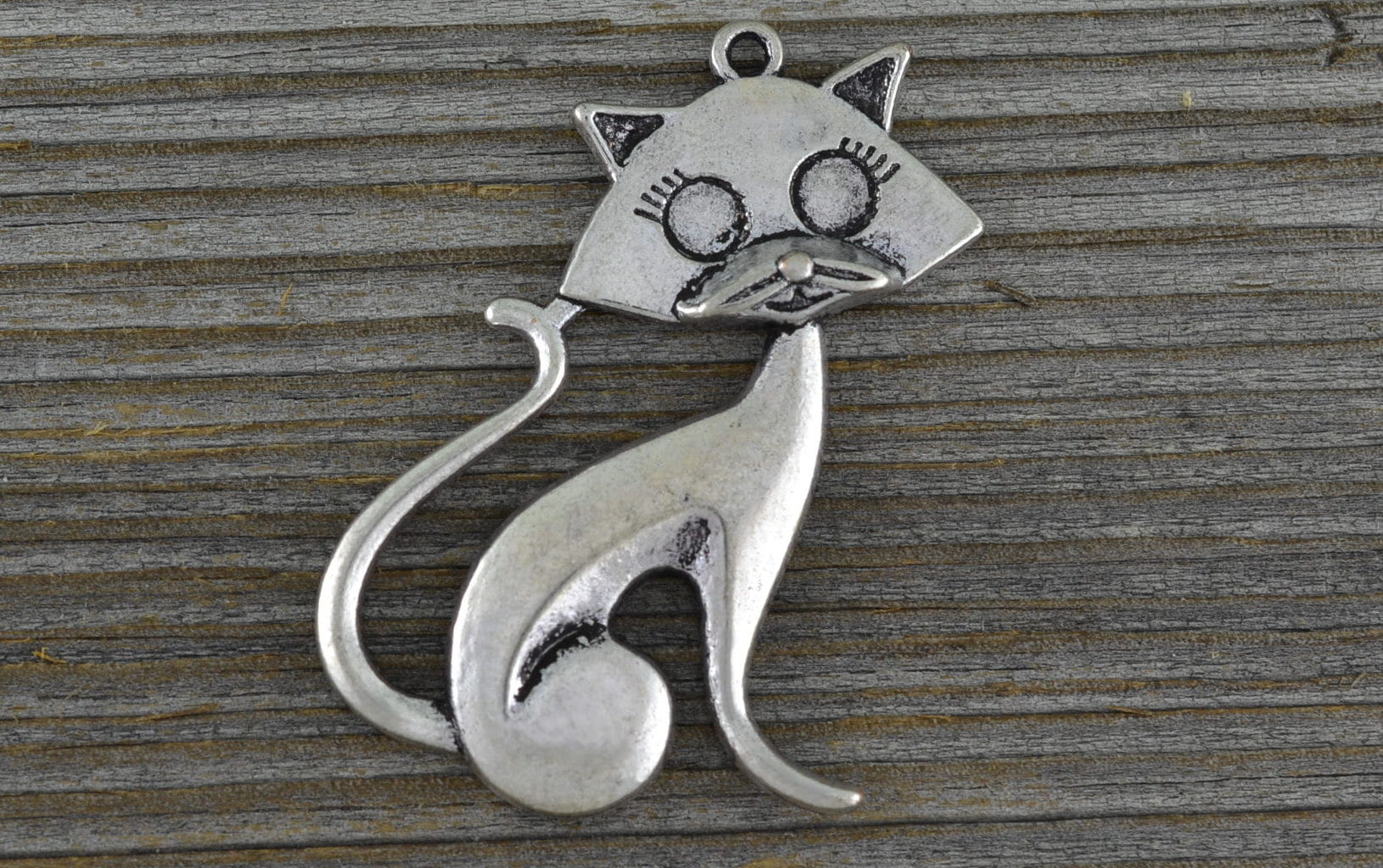 [30813] Zawieszka duża kot w kolorze srebra