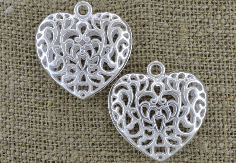 [30816] Zawieszka duża serce ażurowe kolor srebra