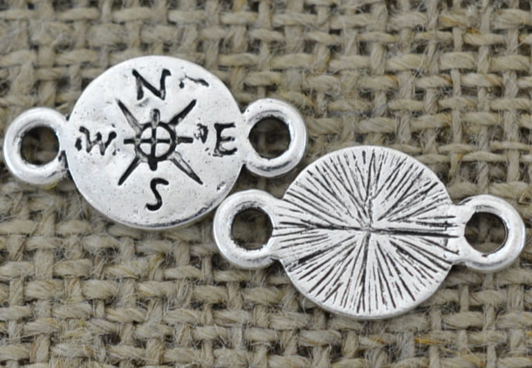 [312178] Łącznik ozdobny kompas srebrny 2szt