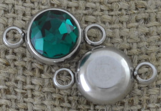 [312253] Łącznik ozdobny okrągły z butelkowozieloną cyrkonią
