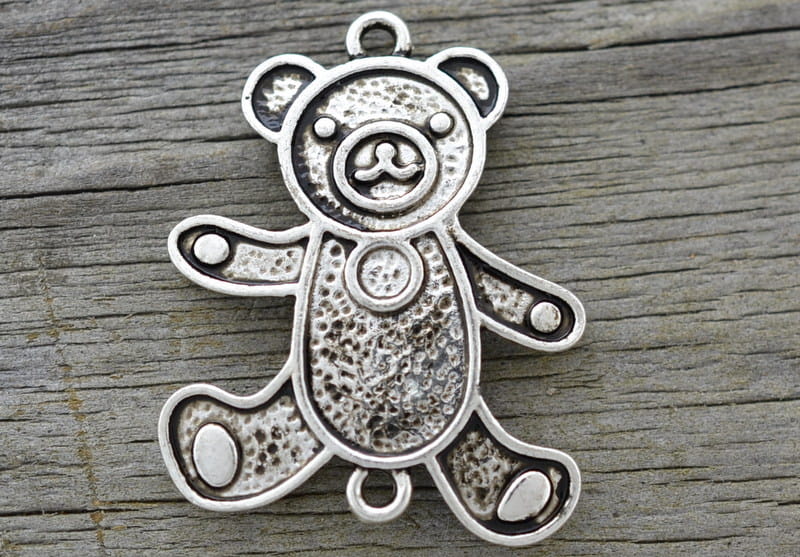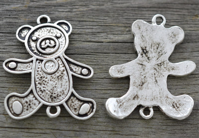 [31238] Element ozdobny łącznik miś kolor srebra