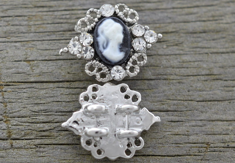 [31239] Łącznik kamea z cyrkoniami kolor srebra