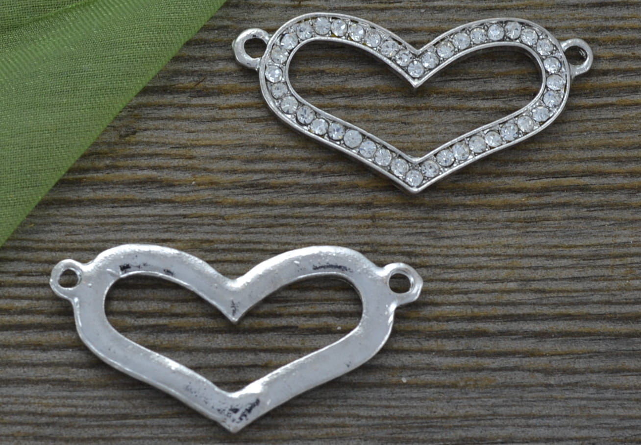 [31279] Łącznik ozdobny serce z cyrkoniami srebro