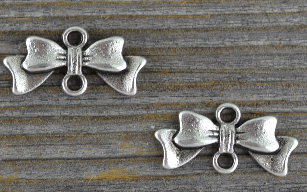 [31289] Łącznik ozdobny kokardka kolor srebra 3szt