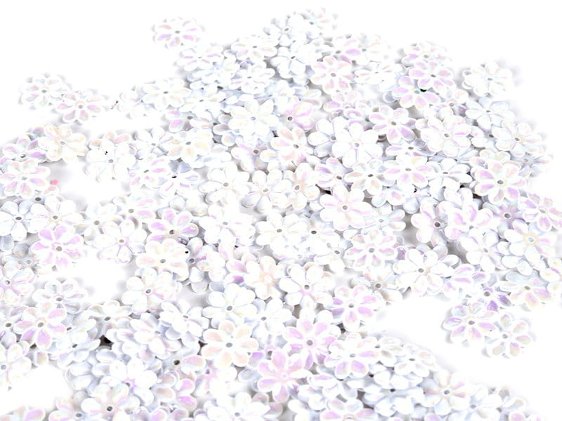 [55568] Cekiny kwiatki mieniące 10mm białe 250szt