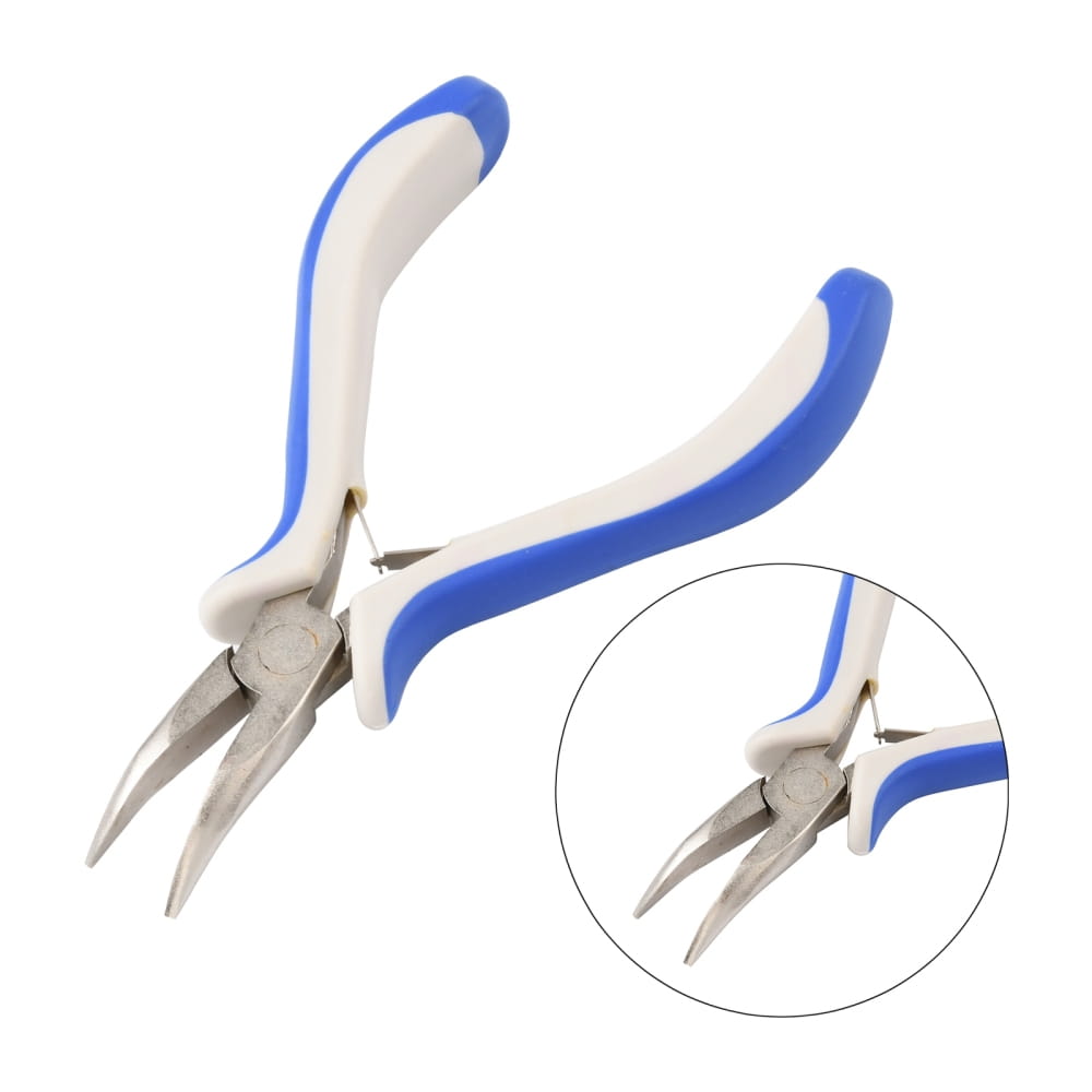 Szczypce jubilerskie o zagiętych końcówkach są niezwykle precyzyjne. Specjalnie wyprofilowane końcówki ułatwiają manewrowanie w bardziej skomplikowanych projektach.