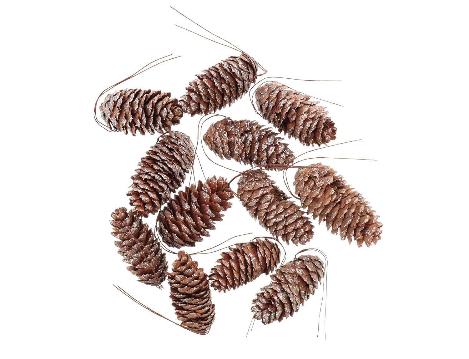 [59021] Szyszki sosnowe na druciku ze srebrnym brokatem 12szt