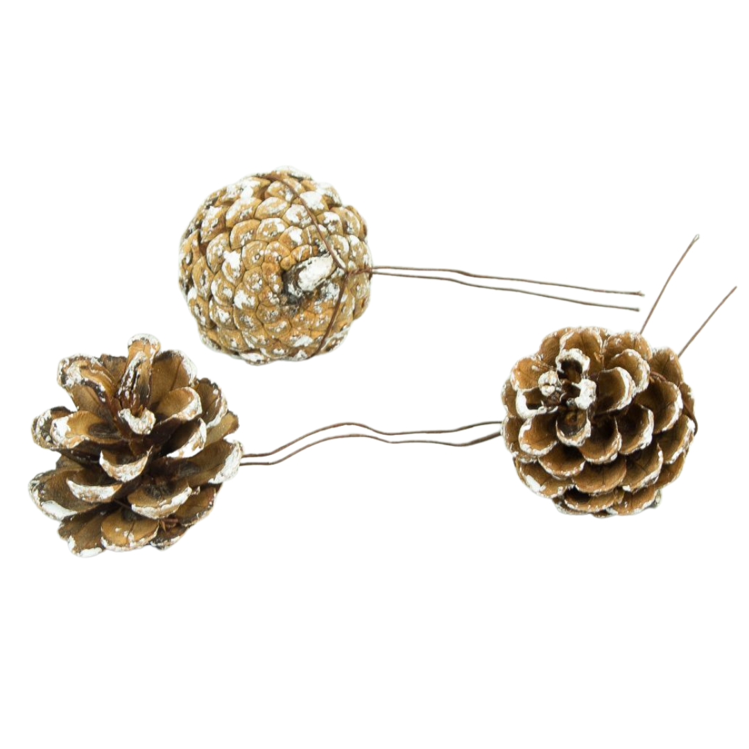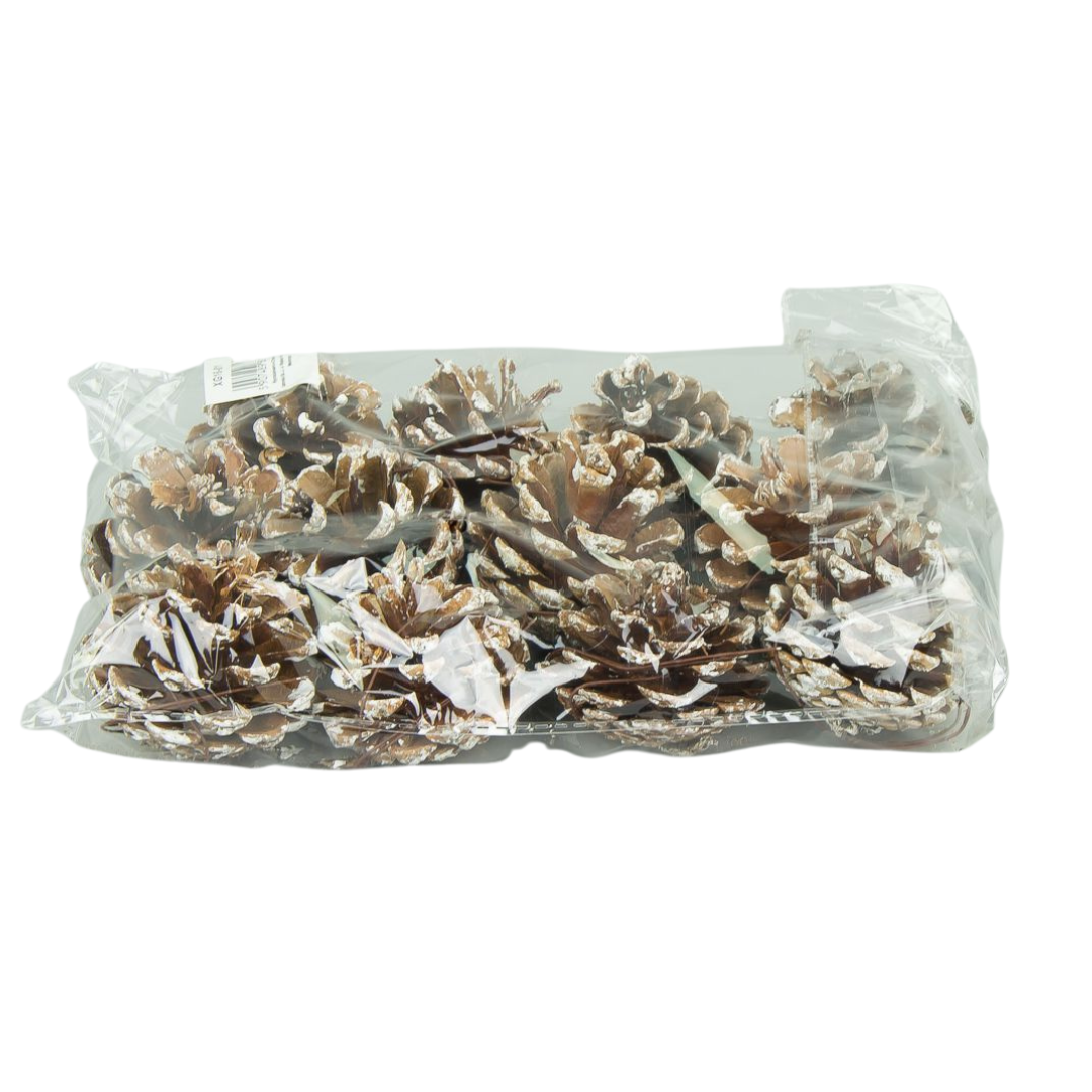 [59065] Szyszki sosnowe krótkie na druciku ośnieżone 12szt