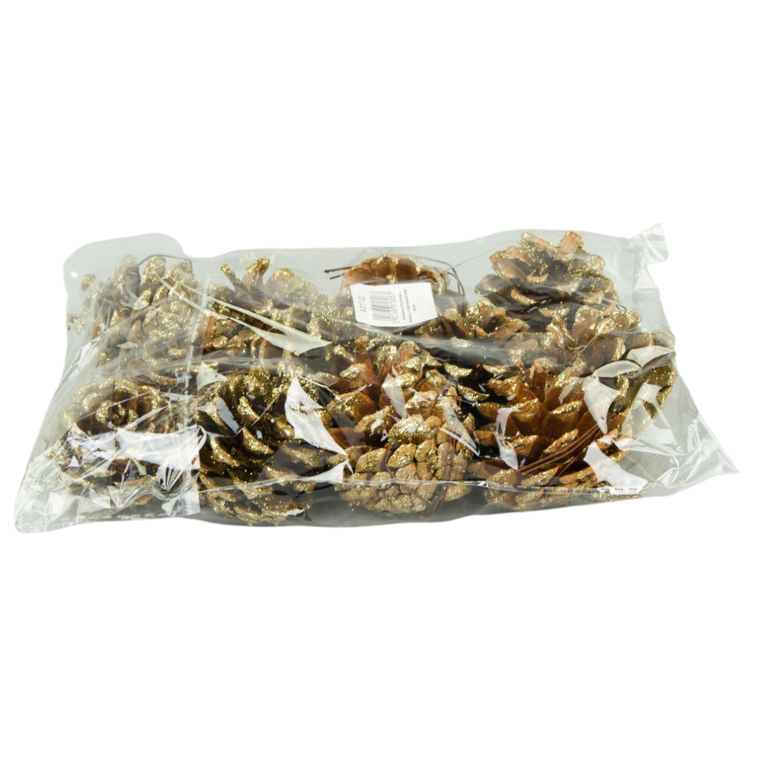 [59067] Szyszki sosnowe krótkie na druciku złoty brokat 12szt