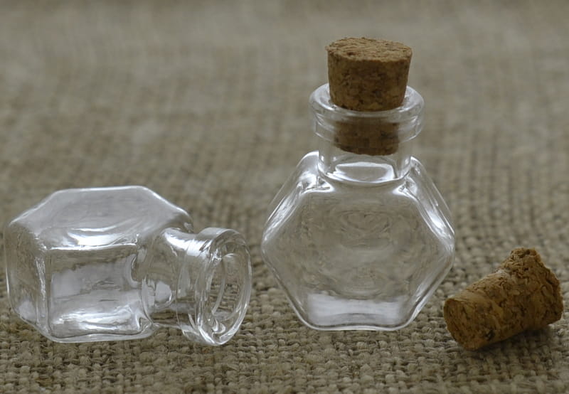 [614123] Buteleczka szklana sześciokątna 27*20mm z korkiem