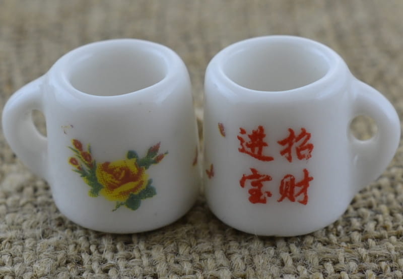 [61461] Miniaturowy kubek ceramiczny róże żółte