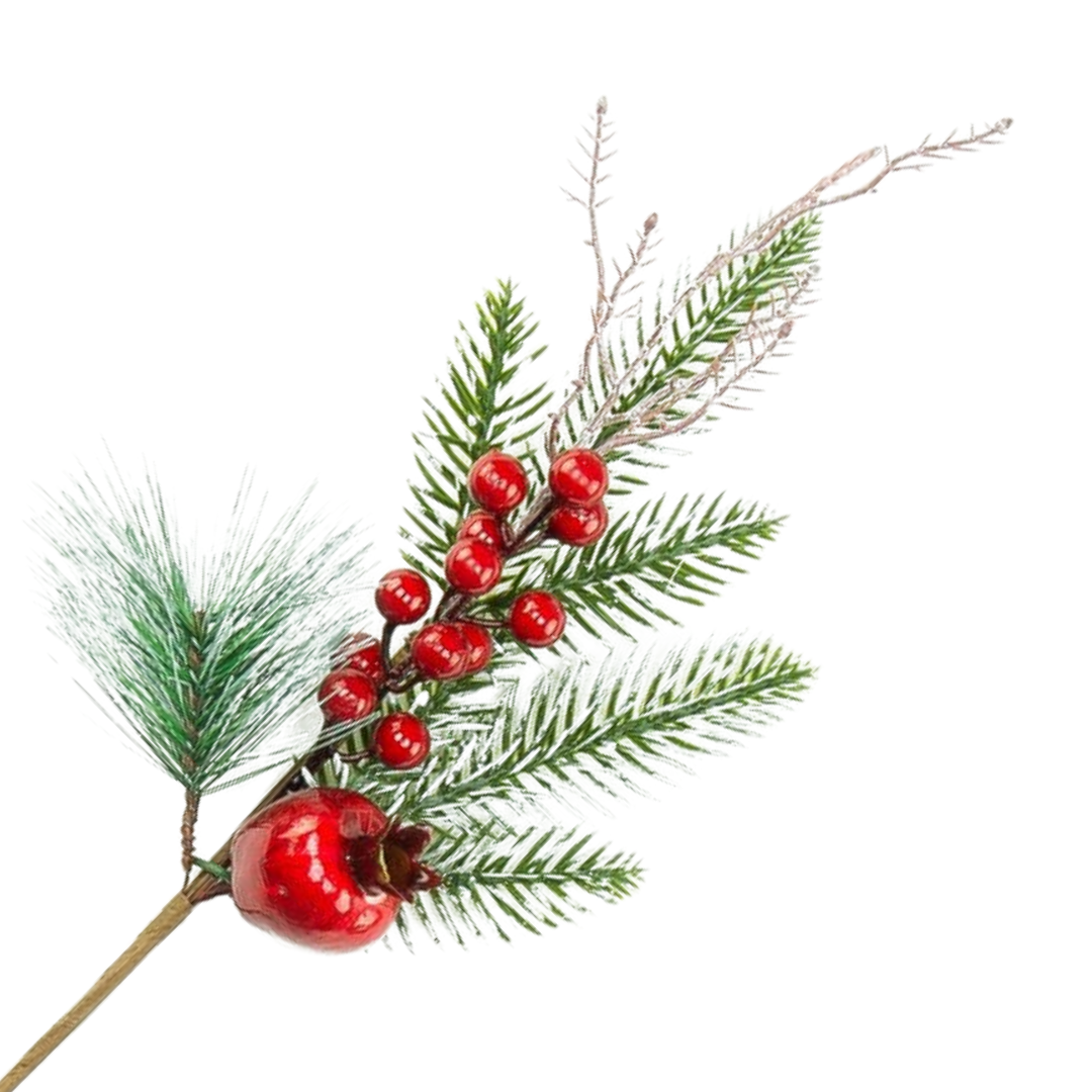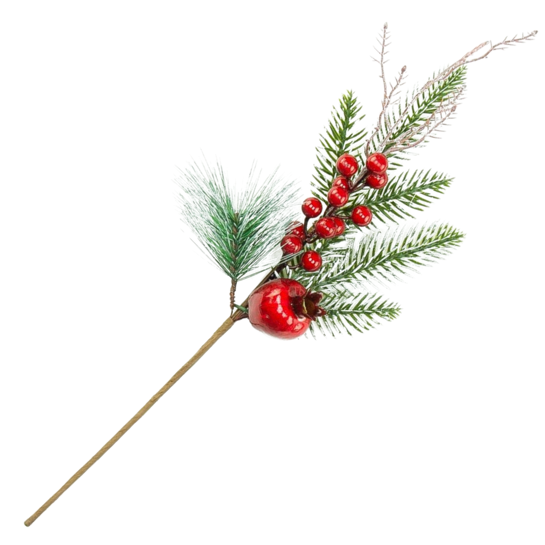 [680643] Gałązka ozdobna z dużym jabłkiem i kuleczkami 43cm